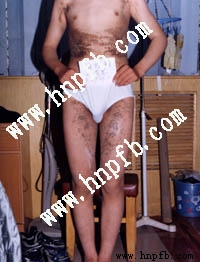 张某来我院治疗时,皮肤表现为干燥、粗糙、起白皮,逐渐发展为四肢躯干及腰部两侧花纹明显,有白皮屑转为灰褐色,冬天尤为严重,常伴有轻度痛痒。因为其母亲有鱼鳞病,所以受遗传的影响在小学时就出现了鱼鳞病的症状,听别人说,鱼鳞病是一种不治之症,所以也就没有认真的治疗,只是在皮损严重的时候,买外用药膏进行治疗。最近,因为张某的一场感冒,引发了鱼鳞病的蔓延,才形成现在严重的症状,这才开始来医院治疗进行系统的治疗。